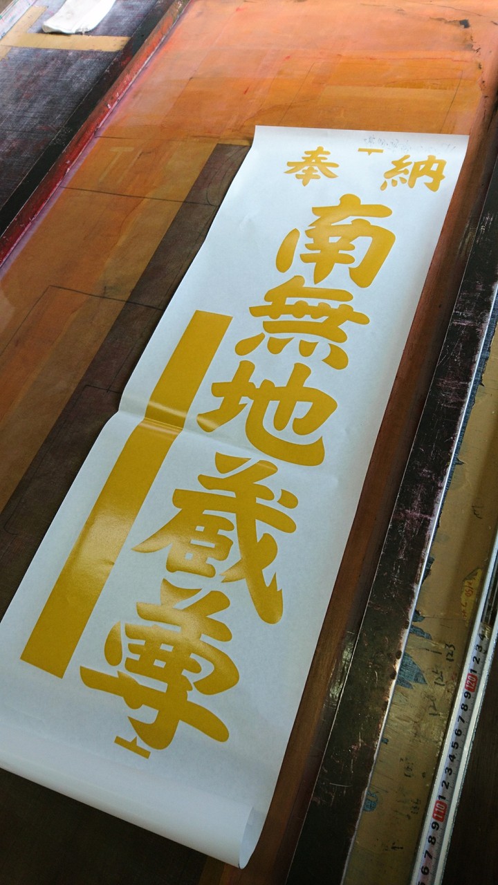 愛知県岩倉市のお客様からお問合せをいただき、オリジナルの奉納のぼり(お寺のぼり)の南無地蔵尊を製作しました。