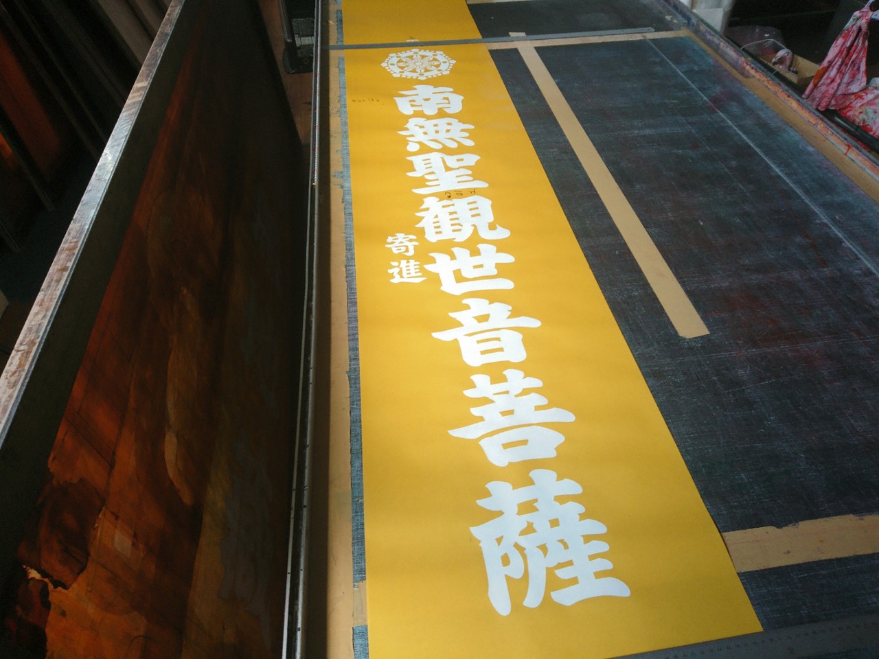 愛知県岩倉市のお寺さまからご連絡をいただき、南無聖観世音菩薩のお寺のぼり(奉納のぼり)の製作をしました。